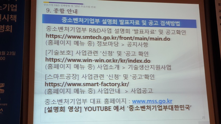 참고로 지원시책 설명회의 영상과 자료를 볼 수 있습니다.